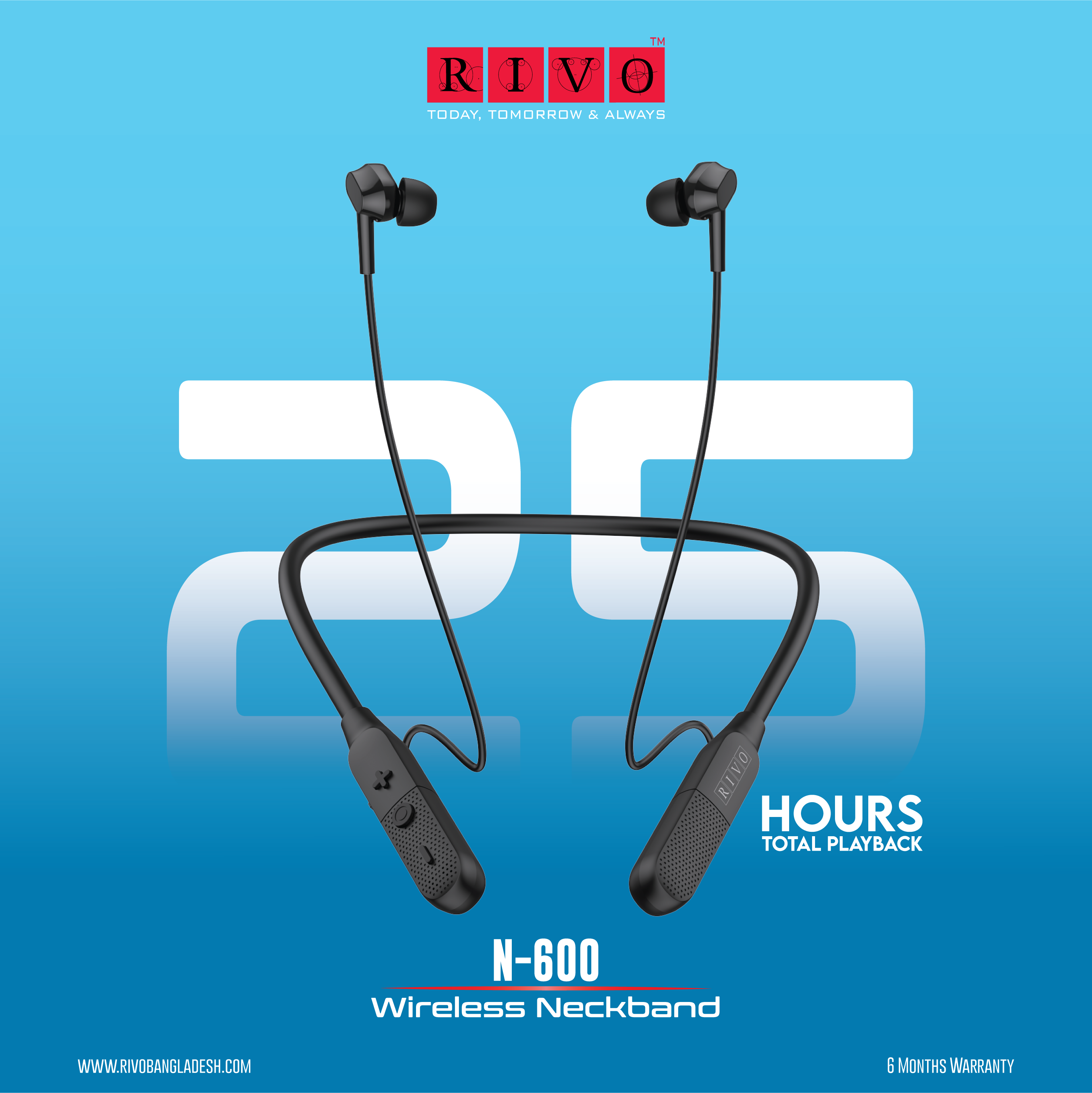 RIVO N-600 Wireless Gaming Neckband In-ear Earphone is equipped with a 10mm dynamic driver that delivers excellent sound quality. It has IPX4 waterproof rating. This neckband provides 25 hours of music playback. It has latest Bluetooth 6.0 Connectivity. The multi-function button will help you to control it remotely, so you can't take your phone out of pocket. The sound is perfectly balanced with all the variation of music. With ultra low latency you can have flawless gaming experience.